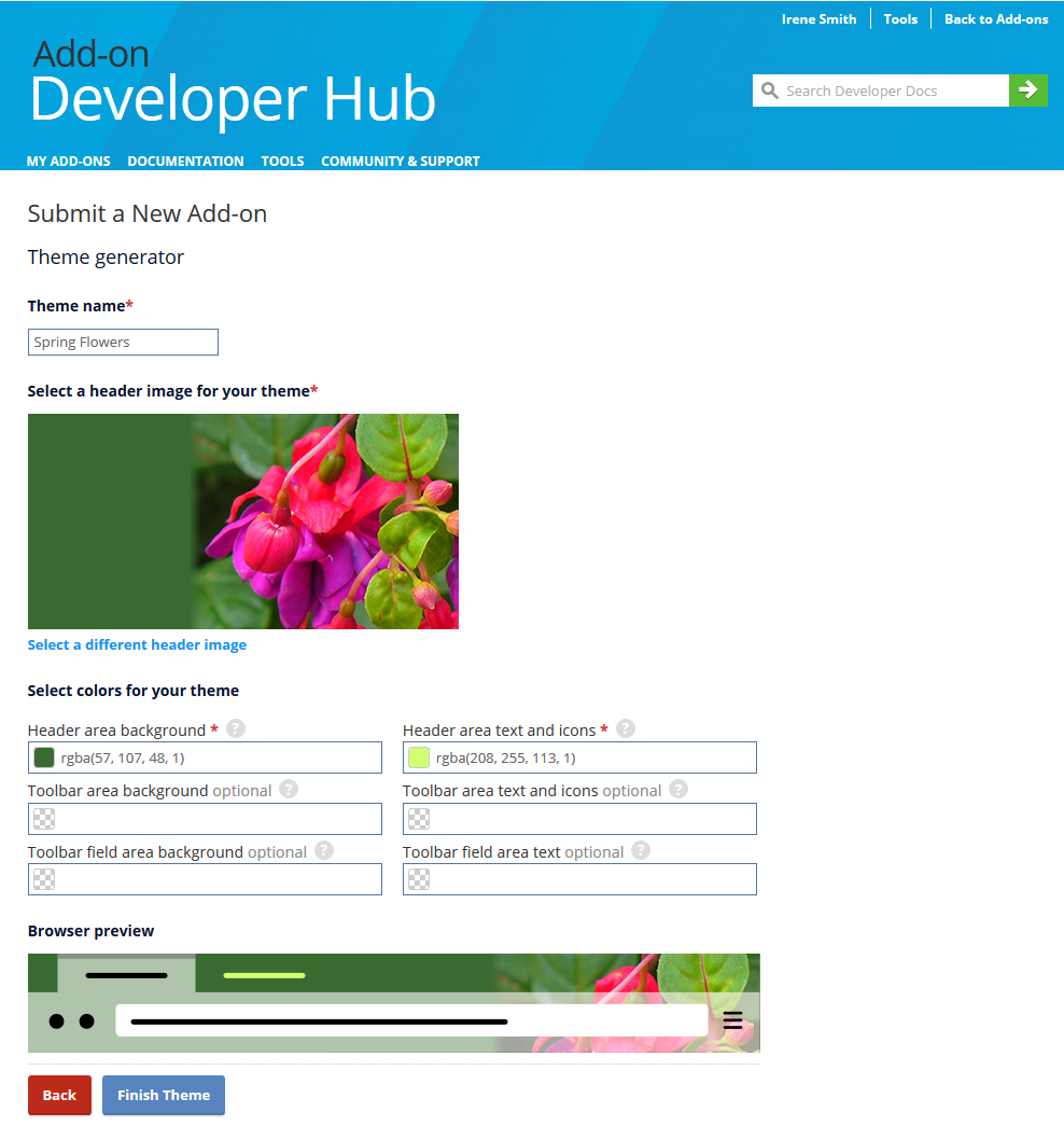 To use the AMO theme generator, fill out the form with information for your new theme.
