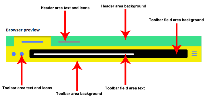 The color of the text and icons in the toolbar and the active tab. Manifest field: toolbar_text.